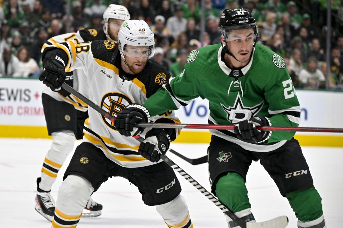 David Pastrnak’s one-time goal with 1:16 remaining in overtime lifted the Boston Bruins to a 3-2 win over the host Dallas Stars in a Tuesday night matchup of NHL conference leaders.