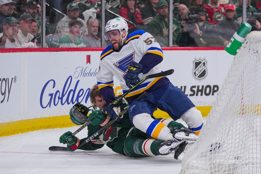 O’Reilly drew a double-minor high-sticking penalty on Kevin Fiala at 8:32 of the third to kill their sixth penalty of the night, and Perron completed the hat trick two seconds after the Blues’ power play ended for a 4-0 lead at 12:34.