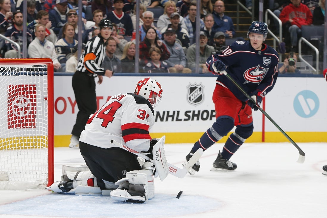The Blue Jackets were unable to convert during a four-minute power play early in the first period, and Meier gave the Devils a 1-0 lead at 15:47. Jack Hughes fed across the slot to Meier, who scored from the right circle with one second remaining in a power play.