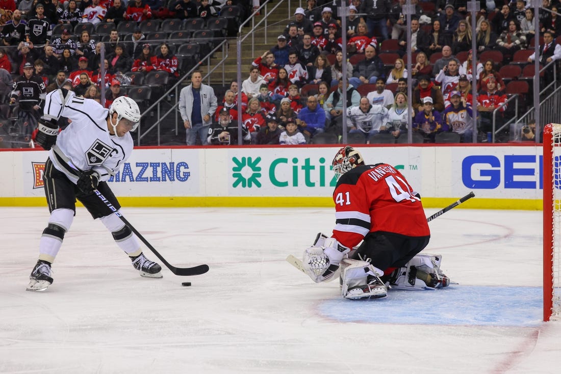 The Devils took advantage of a Kings turnover to begin their comeback attempt. Mercer stole the puck from Sean Walker behind the Kings’ net and fed Tatar, who beat Copley with a backhand from the edge of the crease with 3:16 left in the second.