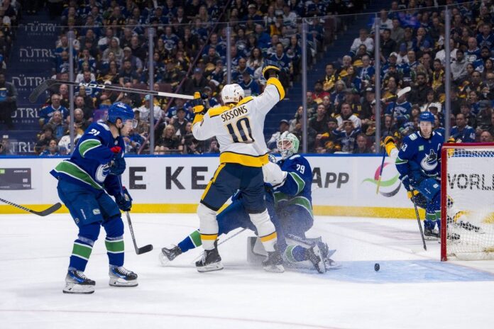 Sissons tallied 95 seconds later to stake the Predators to a 3-0 edge. Taking advantage of a turnover at the Vancouver blue line, Sissons pounced on a rebound after Beauvillier’s shot was denied.
