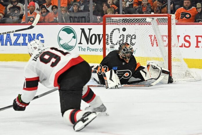Ersson recorded a shutout against Detroit in mid-December. Less than a week later, the Wings scored five first-period goals against Hart. The Flyers rallied to take the lead but Detroit’s Dylan Larkin scored to force the extra session.