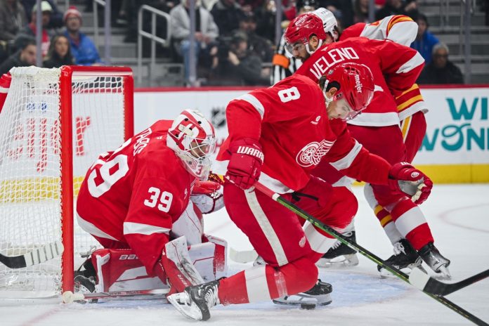 Detroit needed overtime to pull out a 2-1 victory over the Calgary Flames on Wednesday night. Lucas Raymond extended his goal streak to four games by scoring on a power play during the extra session.