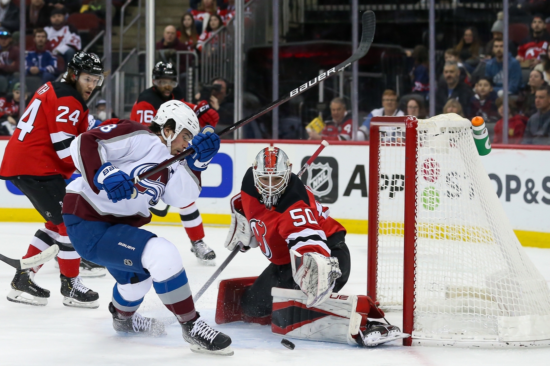Yegor Sharangovich had a goal and an assist as the New Jersey Devils rallied from three goals down to beat the Colorado Avalanche 5-3 in Newark, N.J., on Tuesday night.