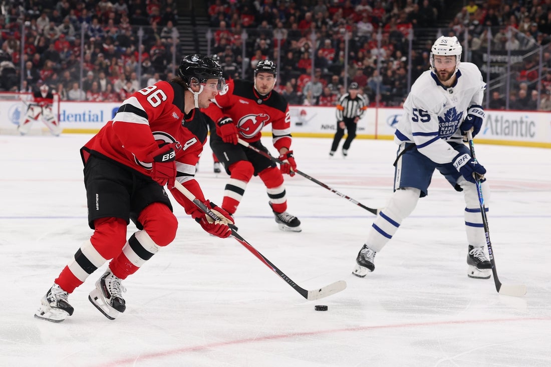 Jesper Bratt scored the final tally of a shootout to give the New Jersey Devils a 4-3 win over the Toronto Maple Leafs on Wednesday in Newark, N.J.