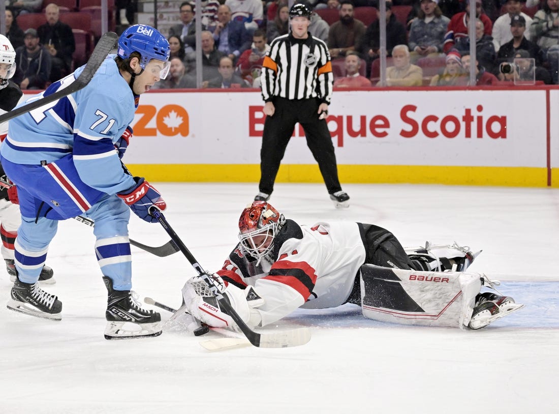 Another Canadiens turnover led to Hughes’ second goal with 4:31 left in the second period. Allen’s pass off the back boards was intended for Jordan Harris, but Dawson Mercer plucked the puck from behind him and passed to Hughes, who scored beyond Allen’s stick as Montreal’s Johnathan Kovacevic fell down in the lane separating Hughes from the goalie.