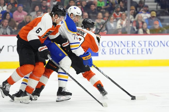 Buffalo will look to avoid a season sweep at the hands of visiting Philadelphia on Thursday. The Flyers skated to three-goal home victories on both Nov. 16 and March 29.