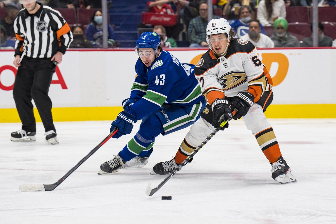The Canucks got Anaheim’s attention when Pearson scored 32 seconds after Steel’s goal, and Pettersson scored on a power play at 15:47 of the second to make it 5-2.