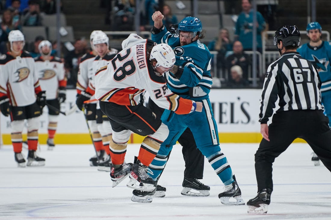 Brett Leason and Mason McTavish each had a goal and an assist, and Max Comtois and Adam Henrique also scored for the Ducks, who also beat the Sharks in a shootout on Tuesday.