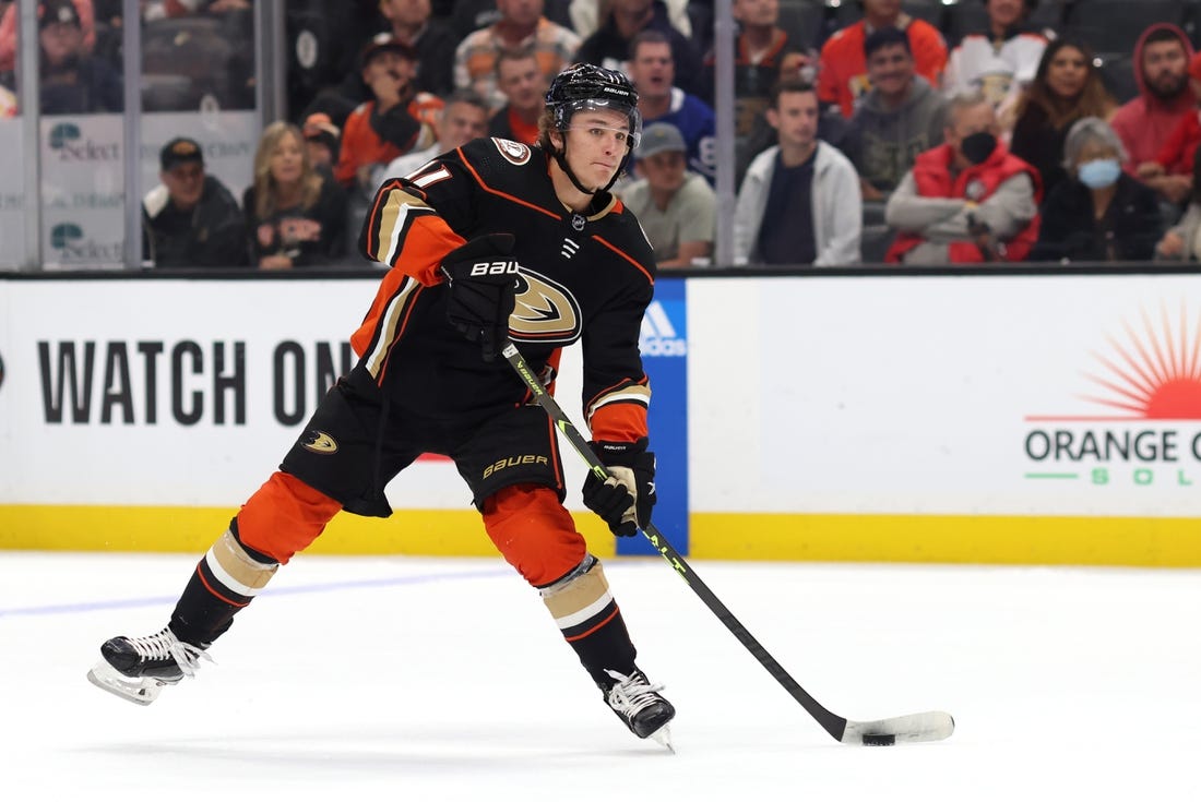 Trevor Zegras scored two goals against the Maple Leafs on Sunday, including the game-winner in overtime, giving the 21-year-old center six goals in the first nine games.