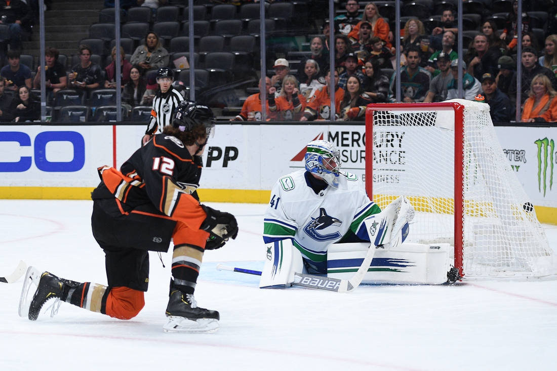 Nils Hoglander had a goal for the Canucks, who have lost twice to the Ducks during their current four-game losing streak. Four of Hoglander’s five goals on the season have come in the past three games.
