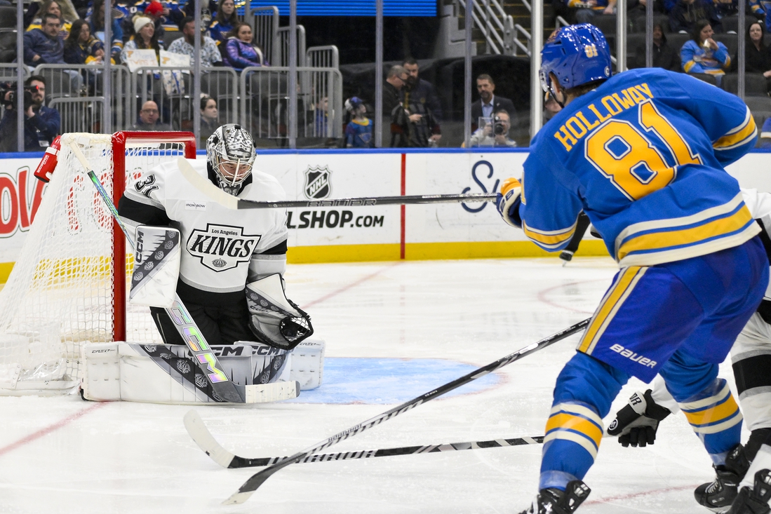 Dylan Holloway scored a goal and earned an assist as the St. Louis Blues defeated the visiting Los Angeles Kings 4-1 on Saturday.