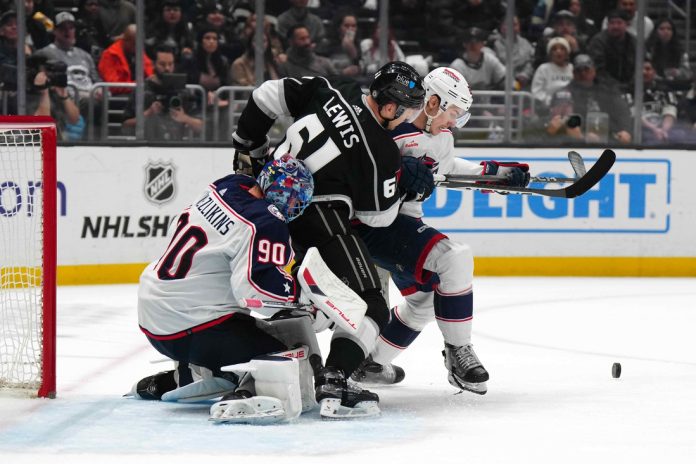Columbus jumped out to a 1-0 lead on Dmitri Voronkov’s goal with 6:34 left in the opening period. The second-year pro, who scored 34 points in 75 games last season, notched his first point of the season, redirecting Justin Danforth’s centering pass past Kings goalie David Rittich (24 saves).