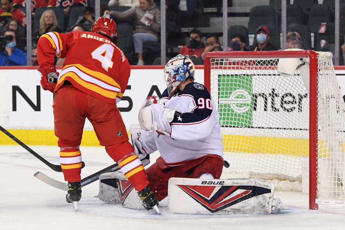 Werenski came back with a goal to make it 5-2 at 8:08, but Toffoli scored for Calgary to push the lead to 6-2 at 11:04.