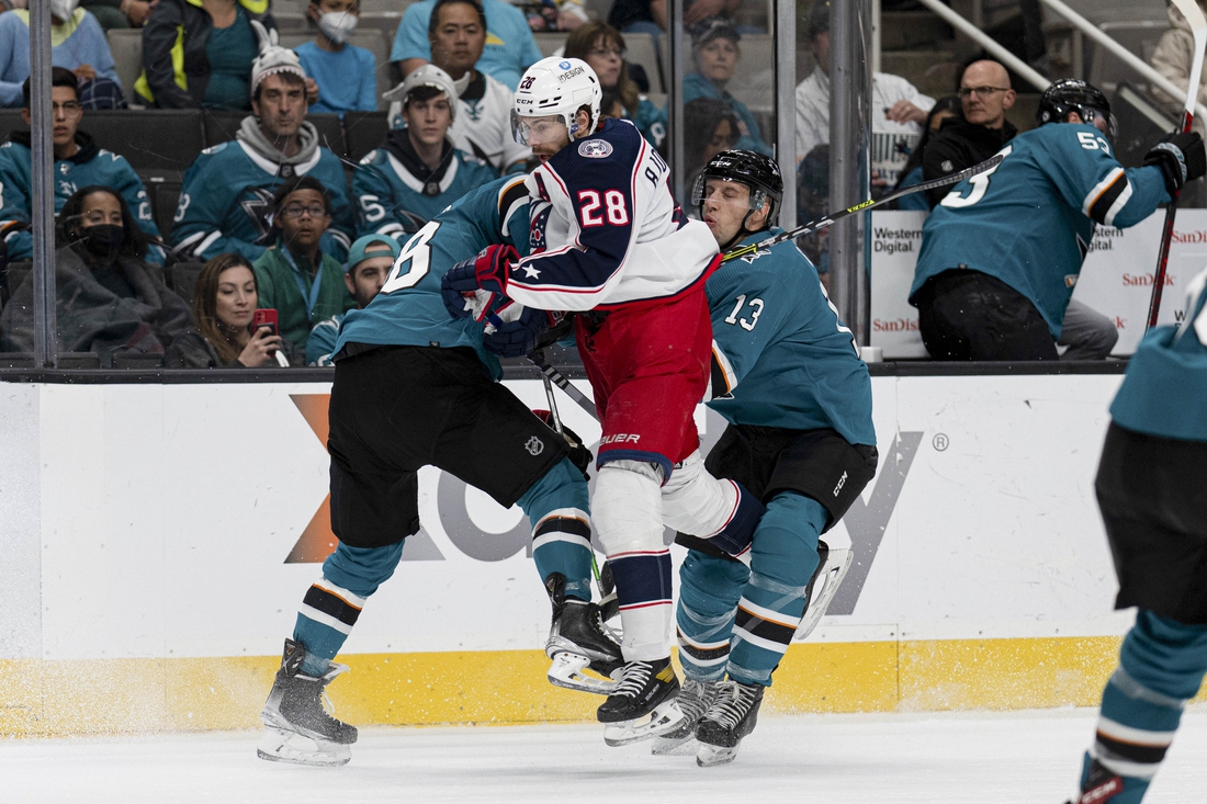 NHL: Fast start helps Sharks top Jackets, end 10-game skid