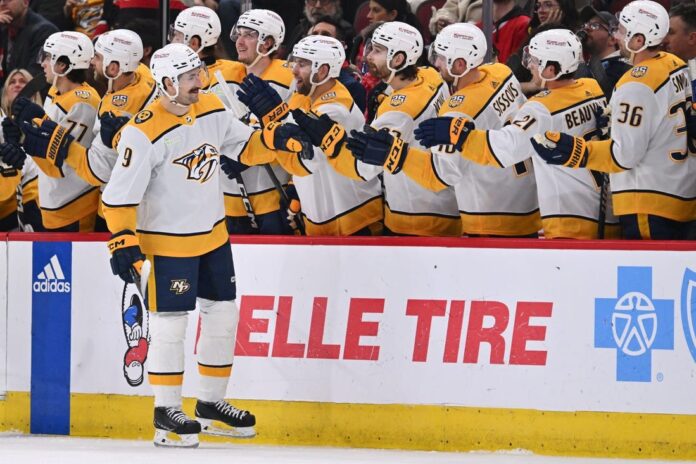 Nashville took a 1-0 lead at the 5:53 mark of the first period on Forsberg’s record-setting 44th goal on the power play, a one-timer from the right circle past an Evangelista screen and inside the far corner.