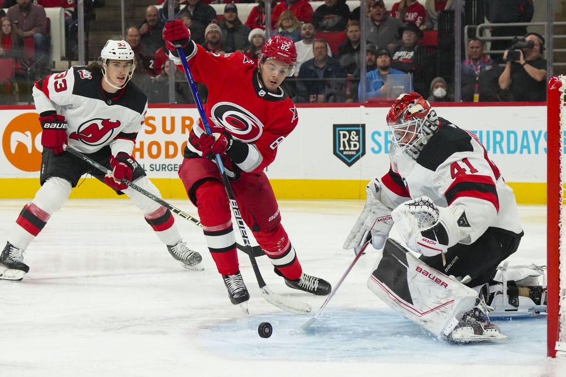 Despite the 3-0 score after two periods, the Devils held a 27-13 advantage in shots on goal. New Jersey’s 26th shot was Jesper Bratt’s breakaway with about 30 seconds left in the second period, a sequence that drew a huge roar from Carolina fans and ultimately a penalty on the Hurricanes.