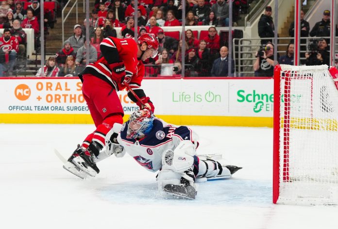 Seth Jarvis had two goals and sparked the Carolina Hurricanes’ big second period in a 7-4 victory against the Columbus Blue Jackets on Thursday night in Raleigh, N.C.