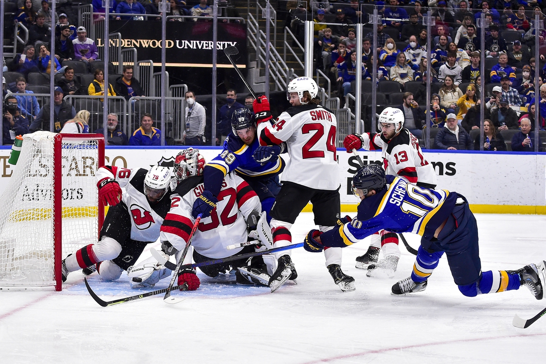 The Devils controlled the first period, outshooting the Blues 10-5 and outscoring them 2-1.