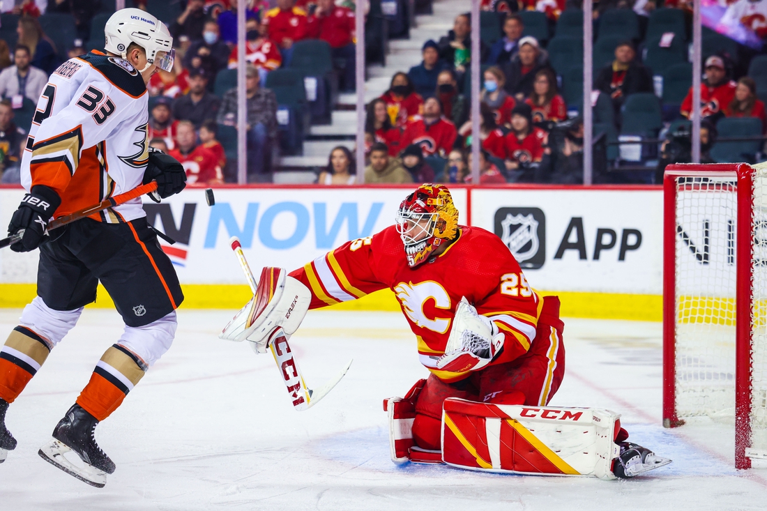 After killing a double-minor high-sticking penalty on Lindholm, the Flames took a 1-0 lead when Dube tipped in a slap shot from Andersson at 5:34 of the first period.