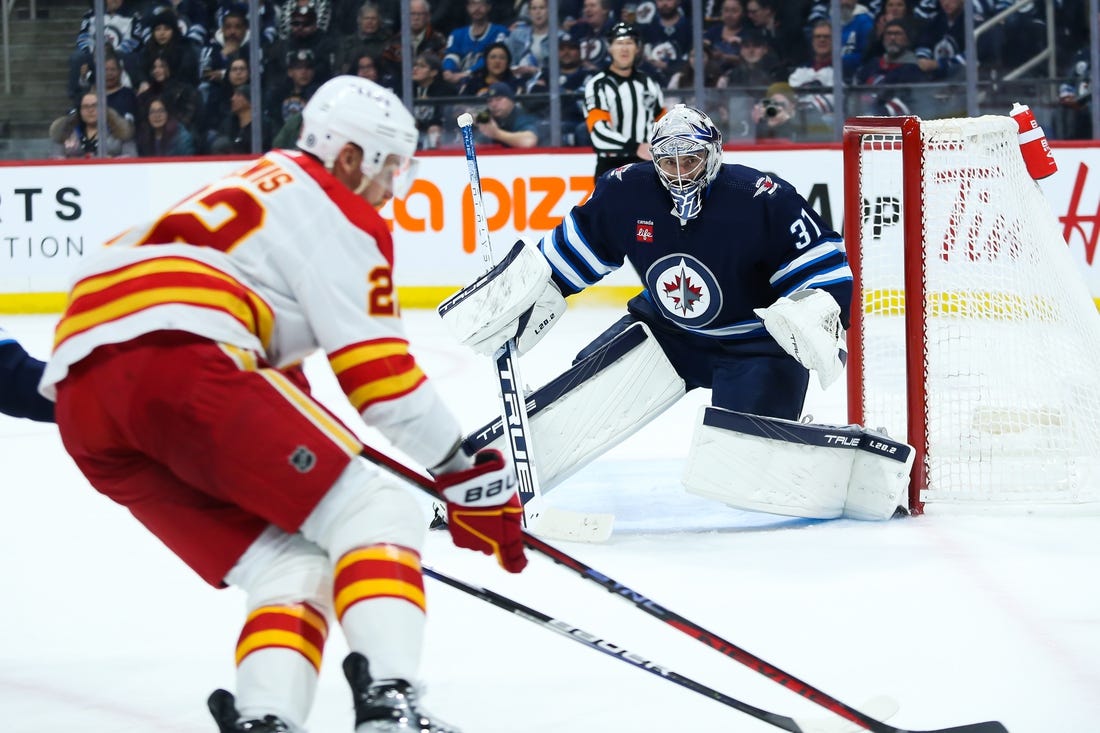 Calgary nearly forged a tie early in the second period after Zadorov cleaned up a rebound following Nick Ritchie’s bid on a breakaway. The Jets challenged the play, and the officials ruled that Ritchie’s left skate resulted in goaltender interference prior to the apparent goal being scored.