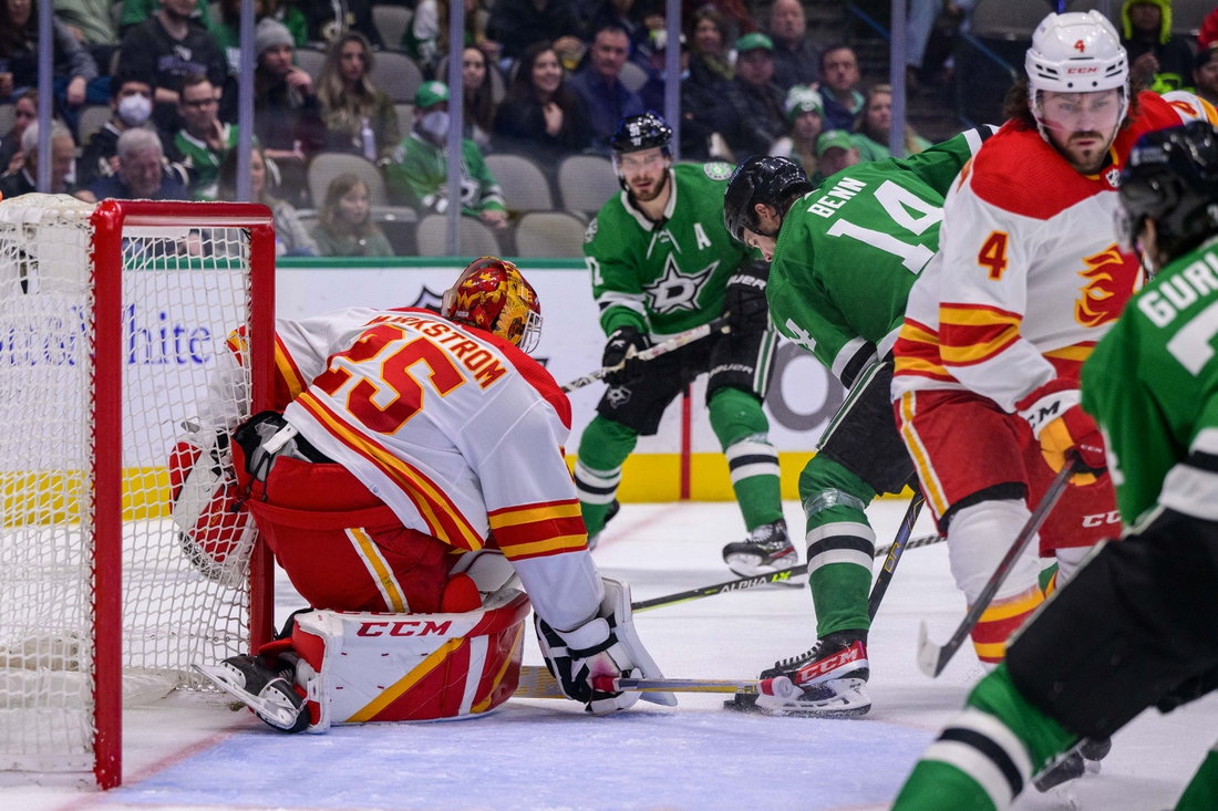 Dallas made it 2-1 with at 18:12 when Robertson’s shot went through the legs of Calgary defenseman Rasmus Andersson and over Markstrom’s glove. The Stars took a 3-1 lead at 11:20 of the second period when Benn scored his 11th of the season by beating Markstrom with a backhander.