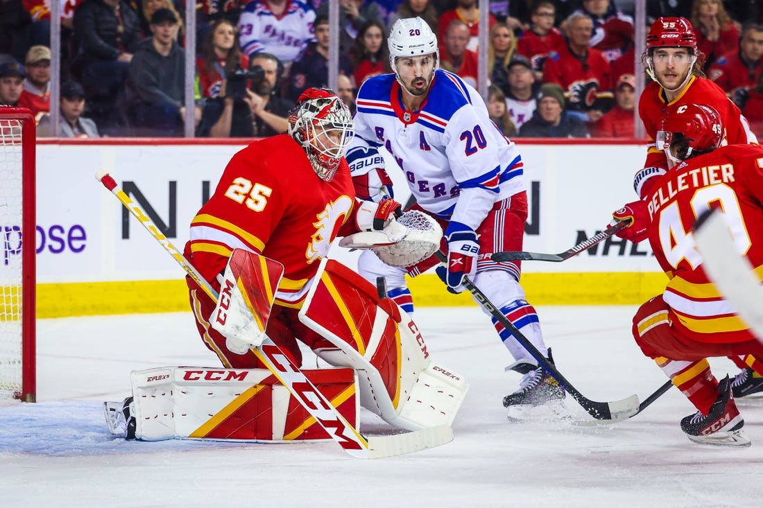 Mangiapane opened the scoring with Calgary’s first shot just 38 seconds into the clash. He fought through K’Andre Miller while driving to the net and lifted a backhand shot for his 12th goal.