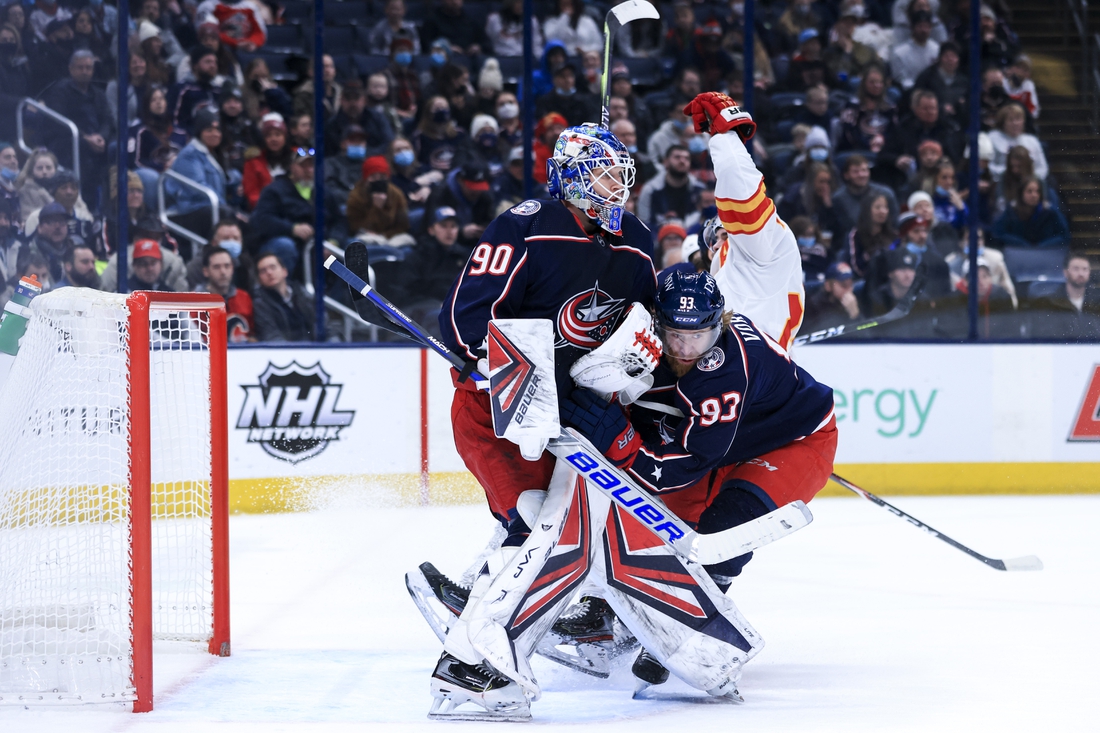 Backlund snapped his 18-game goal-scoring slump when he scored his fifth of the season at 4:21 of the first period. Taking advantage of a turnover at his own blue line, Backlund raced away and beat Merzlikins with a slap shot from the top of the left circle.