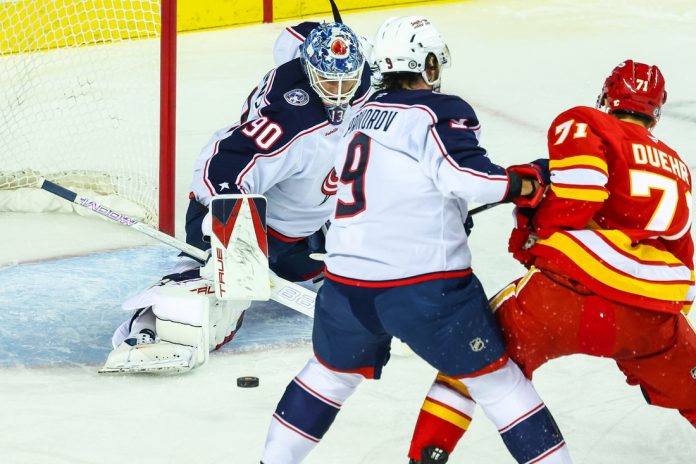 Columbus appeared to open the scoring when Zach Werenski lit the lamp just past the four-minute mark of the first period, but the Flames successfully challenged an uncalled offside.