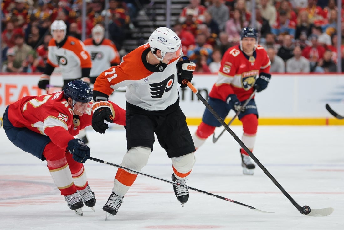 Tyson Foerster scored the tie-breaking goal with 45.2 seconds left to send the Philadelphia Flyers to a 4-2 road victory over the Florida Panthers on Wednesday in Sunrise, Fla.