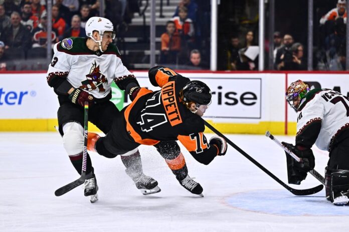 Travis Konecny had one goal and two assists, Morgan Frost scored on a penalty shot and the host Philadelphia Flyers defeated the Arizona Coyotes 5-3 on Monday.