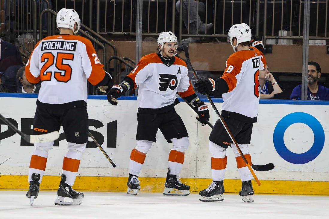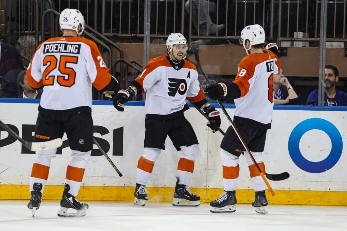 Philadelphia opened the scoring by turning an offensive zone giveaway by New York’s Alex Wennberg into a goal 4:21 into the first period.