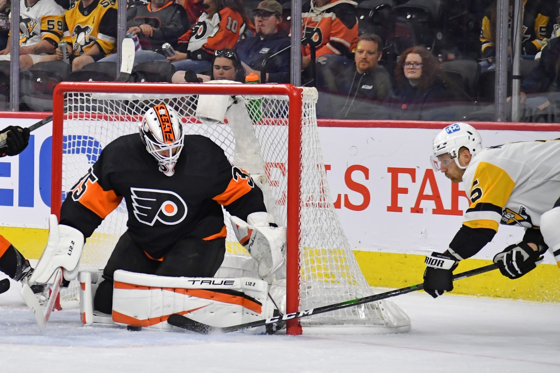 The Penguins were quite active in the opening 20 minutes with 14 shots on goal, one fewer than the Flyers. Late scoring chances by Danton Heinin and Kris Letang were denied by Jones.