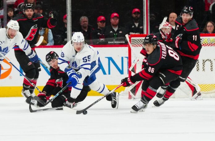 Carolina, which went 3-0-0 against the Maple Leafs during the regular season, had to withstand Toronto’s six-on-five efforts in the last couple of minutes, nearly gaining a clincher but an empty-net attempt from Seth Jarvis hit the right post. While the Hurricanes went on to win, that misfortune for the Hurricanes forward meant his six-game goals streak ended.