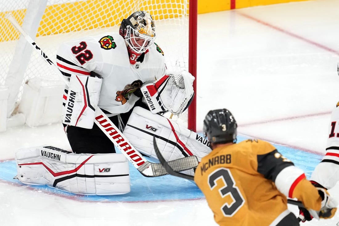Vegas blanked visiting Chicago 1-0 on Oct. 13 in the teams’ first of three scheduled meetings this season. Paul Cotter scored a second-period goal for the Golden Knights to back a 27-save shutout from Logan Thompson.