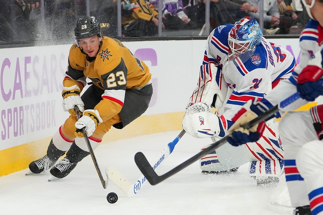 Theodore put Vegas back up by two goals at the 7:18 mark of the third period with a power-play goal, ripping a wrist shot from above the left circle past the double screen of Reilly Smith and Colton Sissons and past Shesterkin’s glove side. The score came just seconds after Schmid made a pad save on Cuylle at the end of a 2-on-1 short-handed rush.
