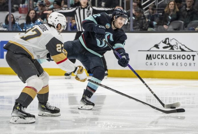 Andre Burakovsky, Matty Beniers and Oliver Bjorkstrand also scored for Seattle, which fell nine points behind the defending Stanley Cup champion Golden Knights for the Western Conference’s second and final wild-card berth. Philipp Grubauer stopped 29 of 34 shots.