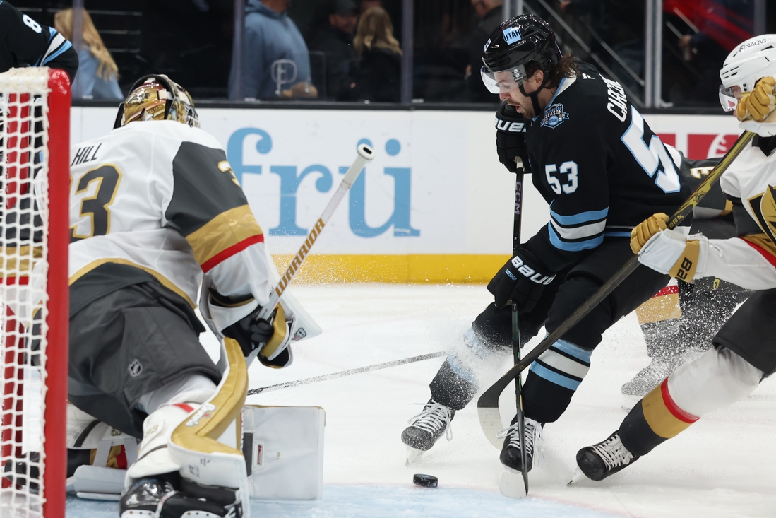 Karlsson redirected Kaeden Korczak’s shot from the right point over the right shoulder of Utah goalie Karel Vejmelka to break a 2-2 tie and give Vegas its first lead of the game. He then sealed the win with an empty-netter with 28.2 seconds to go. Karlsson also added an assist.