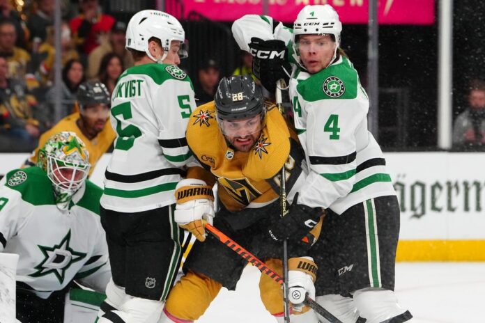 The Golden Knights held the Stars without a shot on goal in the first 7 1/2 minutes but couldn’t solve Oettinger.