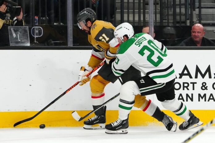 After Vegas defenseman Shea Theodore and Stars forward Matt Duchene traded goals in the second round of the shootout, Marchessault scored with a snap shot from the high slot past Oettinger’s stick side. Hintz then had a chance to send the shootout into a fourth round, but his wrist shot caromed off the top of the crossbar.
