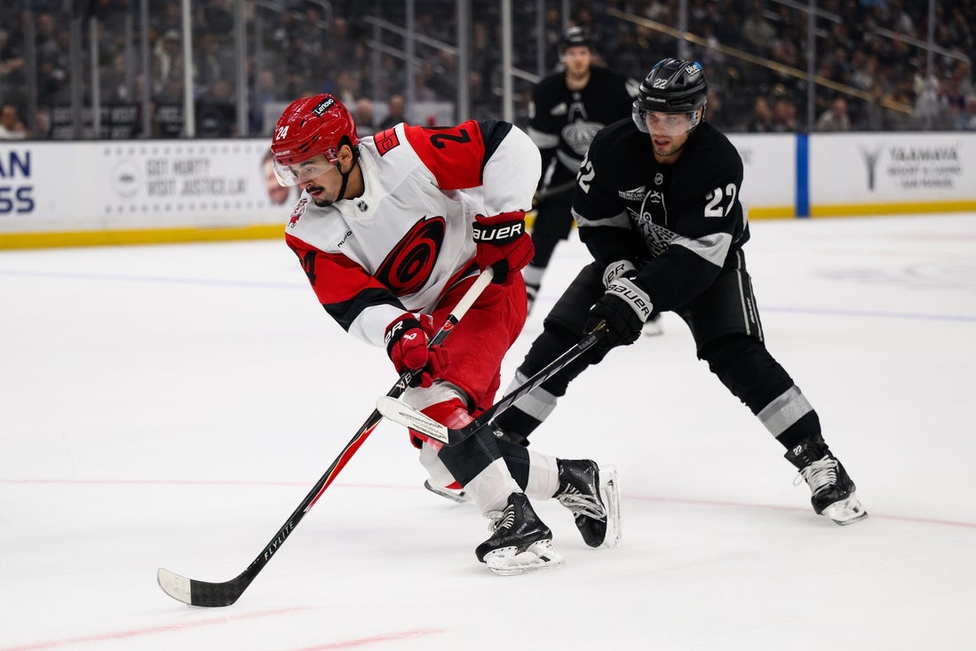 Seth Jarvis scored 1:45 into overtime to give the Carolina Hurricanes a 4-3 win over the host Los Angeles Kings on Saturday night.