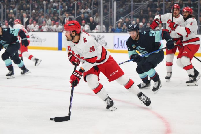 Seth Jarvis had a goal and an assist as the Carolina Hurricanes defeated the host Seattle Kraken 4-1 Saturday night.