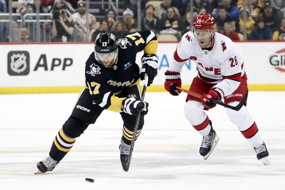 Rust gave Pittsburgh a 3-2 lead at 12:55 of the third. He carried the puck down the left side from his end, got around Carolina’s Jordan Martinook at the bottom of the circle, cut toward the net, went backhand to forehand to elude Raanta and scored far side.