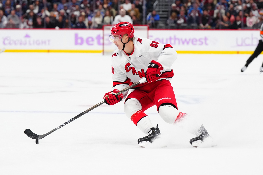 Martin Necas has emerged as the focal point of the well-rounded attack. Necas is among the NHL’s leaders with 24 points, with 21 of those points (seven goals, 14 assists) coming over the forward’s ongoing 10-game points streak.