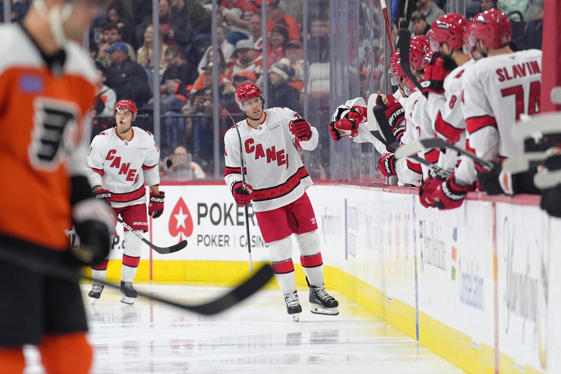 Aho opened the scoring about 8 1/2 minutes into the contest. Ersson stopped a shot by Jackson Blake, but Philadelphia’s Travis Konecny lost control of the rebound to set up Aho for his 25th of the season.