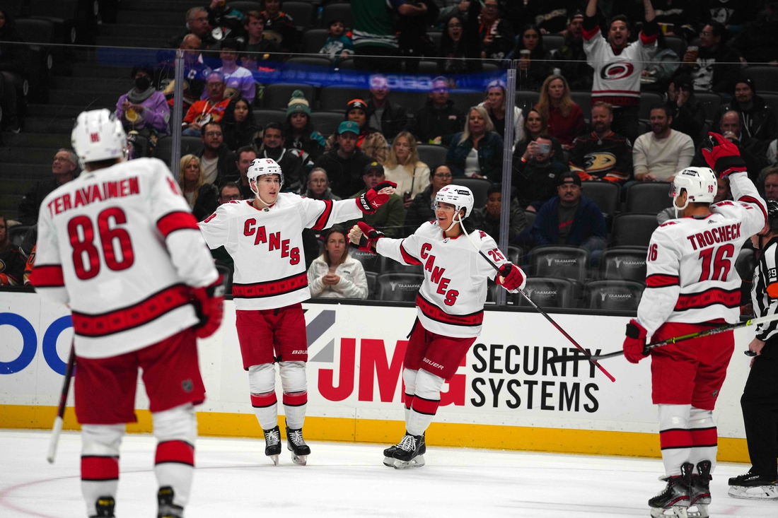 Seth Jarvis scored the tiebreaking goal near the midway point of the third period, and the Carolina Hurricanes won 2-1 at Anaheim on Thursday night, ending the Ducks’ eight-game winning streak.