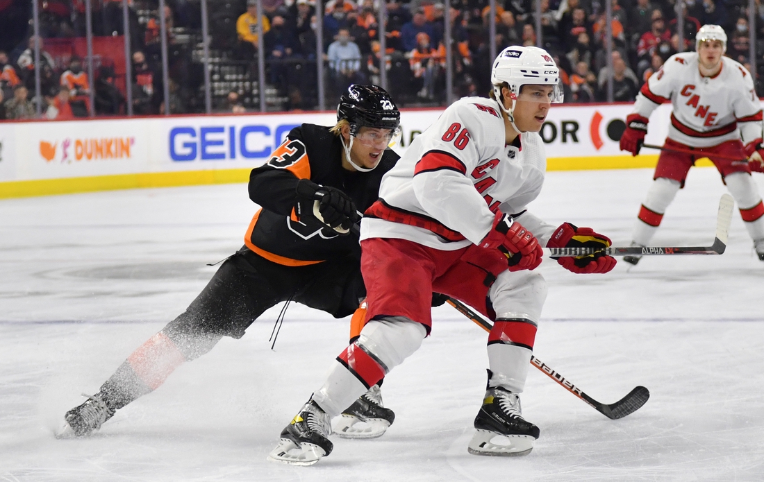 The Hurricanes regained the lead 2-1 at 12:13 when Teravainen received a pass in front and redirected the puck off Philadelphia’s Nick Seeler and into the net.