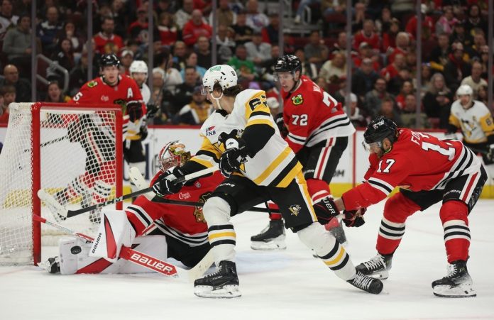 Chicago (22-45-10, 54 points) navigated a late charge from the Penguins, who tallied their lone goal when Rickard Rakell scored on the power play with 5:24 remaining.
