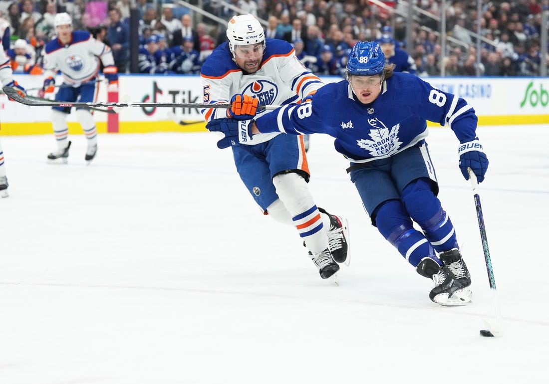 Draisaitl scored at 12:31 of the third – his 42nd — with Timothy Liljegren off for tripping to cut Toronto’s lead to 5-4.