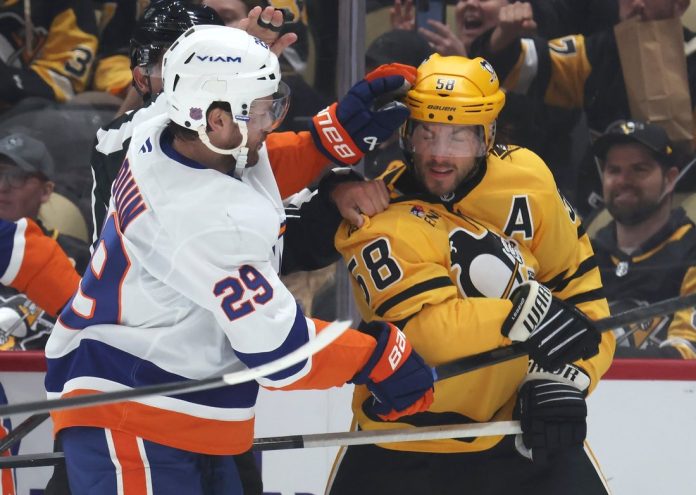 Drouin was assessed a five-minute major and a game misconduct with 15 seconds left in the third period Thursday. The Penguins spoiled the NHL debut of top overall pick Matthew Schaefer and the season opener for the Islanders with a 4-3 victory in Pittsburgh.